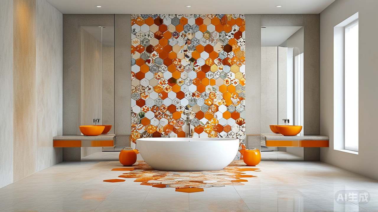 花砖,恰是这舞台上的舞者。图案繁复者,一片便是风景。将它们视作空间中的珍宝,零星点缀于纯色六角之间——玄关地面的一处落款,淋浴区墙面的一隅惊艳。无需贪多,几片足矣,留白之处更显珍贵。若偏爱连续图案的花砖,则需更大胆的切割与规划,将整面墙或特定区域交予它,让图案完整叙事,避免碎片化的尴尬。 色彩呼应则是无形的丝线,悄然串联起不同元素。花砖中一抹跳跃的橙黄,或许能在纯色六角腰线或同色系小配件上找到回响。地面与墙面之间,六角与花砖之间,色彩若有若无的对话,空间便有了流动的韵律感。