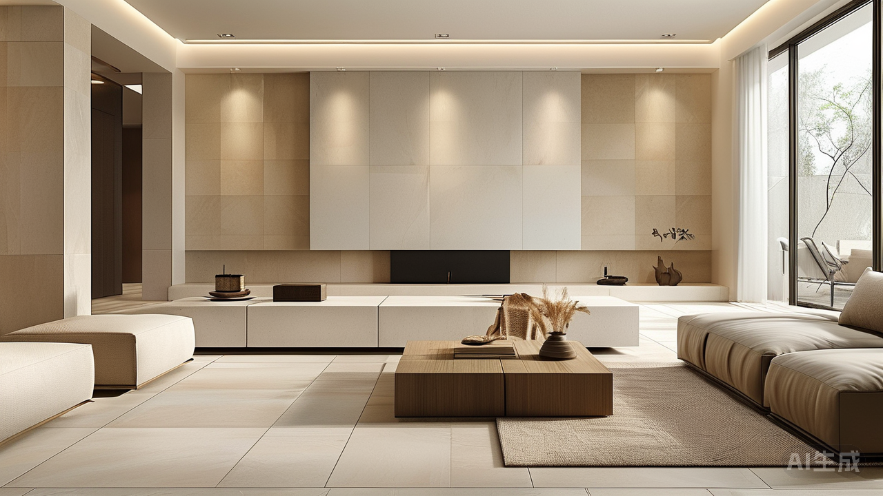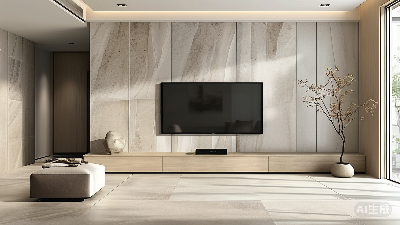 浅暖色系的米白、柔灰,如同空间沉稳的底色,拥有难以匹敌的包容力。它们不张扬,却能与各种风格的家具、装饰和谐相融,无论光影如何流转,始终传递出宁静而温润的底色。电视背景墙若延续地面的浅色基调,空间更显整体统一,大气之感油然而生。 瓷砖表面的质地关乎安全与长久陪伴。哑光面或柔光面瓷砖,光线漫射其上,柔和而不刺眼,步履之间不易滑倒,为家人的日常增添一份安心。其表面也更耐磨损划痕,经年累月仍能保持清雅容颜。关注防滑性能,选择符合安全标准的防滑系数(如干法静摩擦系数≥0.6),是对家人无声的守护。