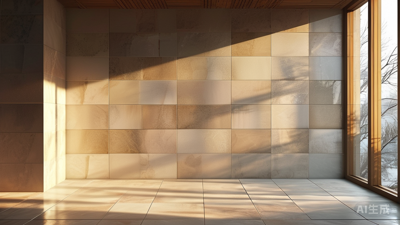 以瓷砖为幕,光影便是最高明的画师,在墙面上肆意挥洒抽象意境。它善于在墙与墙的转折处低语徘徊,在光洁如镜的瓷砖表面留下水波般的涟漪,瞬间消解了墙角的生硬转折,使空间顿生开阔流动之意;它亦热衷于在精心切割的瓷砖拼缝间游走,强化每一道纹理的纵深,赋予二维平面以奇异的立体张力;而当光漫过那些模拟天然石纹的瓷砖表面,更仿佛唤醒沉睡山水的精魄,在室内投映出流动的水墨意象。光影是空间最自由也最富诗意的语言,以瓷砖为画布,勾勒出超越具象的视觉诗行。