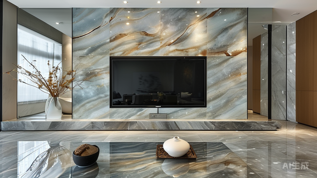 镜面理石:以瓷砖为幕,勾勒现代奢居的光影艺术当现代居所于简约线条中探寻奢意,一面面如镜如水的瓷砖便悄然登上空间的舞台。它们不再仅是铺陈脚底的配角,而是化身成墙壁上流转的光影画卷,以冷峻材质与温润光晕的微妙对话,为当代奢居勾勒出深邃而灵动的艺术边界。 这奢居的光影艺术,首先诞生于瓷砖本身对光线的精妙驯服。镜面理石瓷砖,其表面经过如镜面般光滑的抛光工艺,仿佛凝固了水面最平静的刹那。当自然光透过窗棂倾泻,或室内暖意融融的人工光轻柔洒落,光便在此处驻留、流转、跳跃。它们不是被生硬反射,而是被瓷砖的肌理温柔分解、吸纳,再以更富层次的方式弥散开来,如同无形之笔在空间画布上留下瞬息万变的光迹。每一束光都携带着空间的呼吸,在瓷砖的明暗交界处低徊,光影律动间,冰冷的材质仿佛被赋予了生命的脉搏,空间亦随之轻盈而富有呼吸感。
