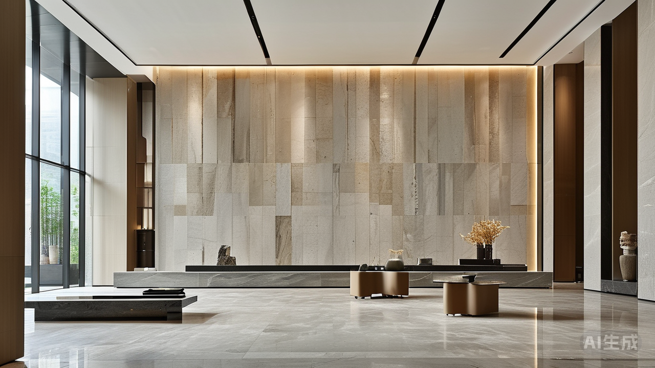 在具体应用中,INFINITY SERIES以其纯粹质感与无缝特性,成为空间情绪最深刻的表达者。在开阔的客厅中,整面岩板电视背景墙自地面升腾而起,视觉的连贯性最大化延展,空间感豁然开朗;在尊贵的酒店大堂,地面与立柱的无缝衔接,塑造出殿堂级的奢华氛围;在追求现代极简的私宅,岩板台面与背墙一气呵成,营造出如艺术馆般精致纯粹的烹飪空间。每一处应用,INFINITY SERIES都在无言中诉说着:真正的品质不在于材料的堆砌,而在于细节处不着痕迹的浑然天成。
