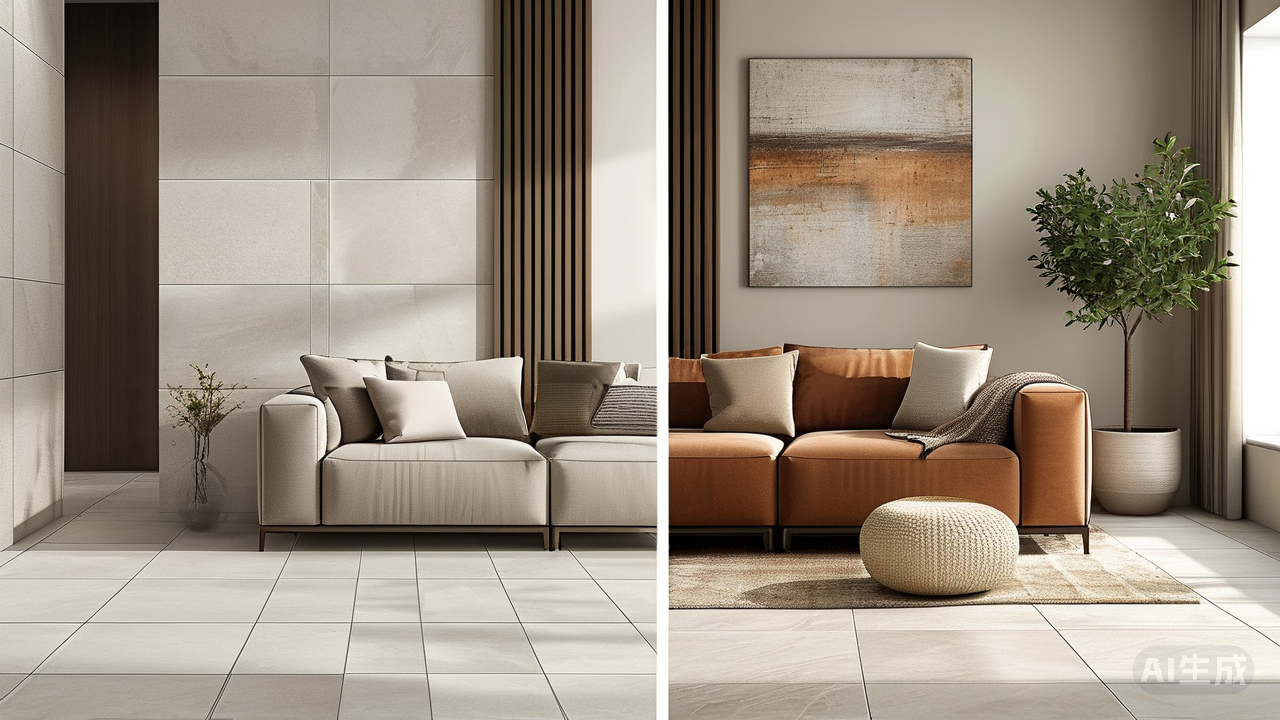 瓷砖尺寸与风格气质紧密相连。800x800的方正比例,如同古典画卷的装帧,承载着传统与温馨的韵味,尤其适合追求经典氛围的家居。而750x1500的修长身姿,则是现代简约与轻奢风尚的天然盟友。纵向铺贴时,它化作一道道流动的视线箭头,拉伸空间高度;横向铺贴时,又能营造出开阔的地面画卷,赋予空间洗练的当代气质。