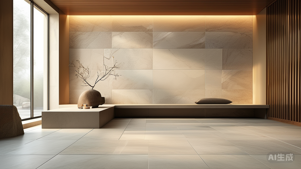 全屋瓷砖一体化的设计思路:如何实现空间的连贯与统一?推开家门,踏过玄关,视线毫无阻滞地延伸至客厅深处。脚下是同一片温润的素灰哑光砖,墙面是相近纹理的哑白岩板——没有门槛石的突兀切割,亦无材质间的生硬对峙。空间,以瓷砖为纸,悄然绘就一幅连贯长卷,如墨迹在宣纸上自然晕染开去,无声诉说着一体化的妙韵。 这妙韵的核心,便在于瓷砖本身的选择与铺陈。全屋地面统一选用质感相近的瓷质画布,哑光面或柔光面最是熨帖,既能拒绝恼人的眩光干扰,又暗含防滑的实用关怀。尺寸上,大规格瓷砖堪称主角,它们如展开的巨幅长卷,大幅减少视觉上的分割线。铺贴时,更可依据空间动线巧妙规划纹理方向,如同用墨线牵引视线,让空间感随步伐自然流淌、舒展。